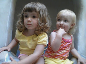 We drove around extra long in the car to get both girls to fall asleep. Adia fought it, but was finally down for the count. When we got back to the house, Adia and I took a 2 hour nap together. It was heaven. Tanae didn't sleep nearly that long. Adia was so happy to see her when she woke up, but she was also starving. We'd missed lunch. She gobbled some cottage cheese and then went back to playing.