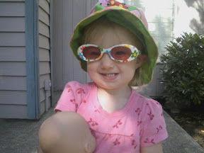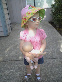 After Scott woke up, we went to Blockbuster. Adia always wants to wear a hat and sunglasses when we go anywhere anymore. That hat usually doesn't stay on, but the sunglasses do. She'll actually ask for them if she didn't put them on inside. As you can see, baby usually accompanies us too. She sleeps with her, rides in the cart with her and usually goes for walks too.
